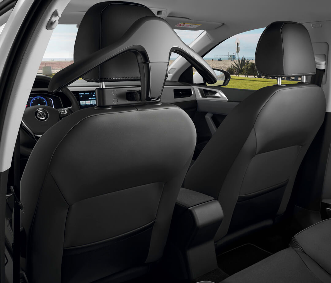 Pruebe el nuevo accesorio Volkswagen y evite llegar con un traje arrugado. La percha cabe en el soporte base y proporciona una forma segura de transportar su abrigo sin tener que colocarlo en los asientos.